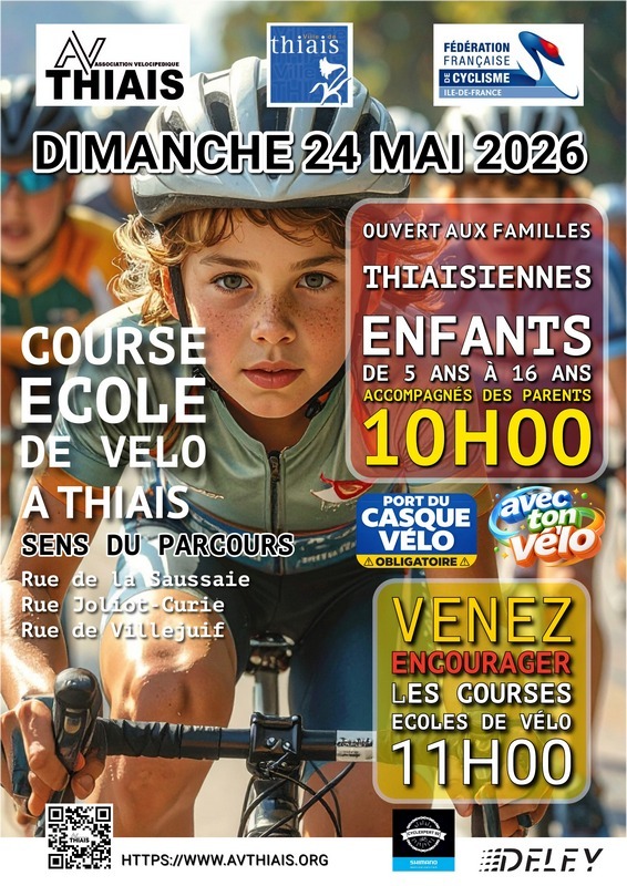 Après le forum des activités thiaisiennes qui se déroulera le samedi 6 septembre , le samedi 13 septembre se déroulera la porte ouverte école de vélo .